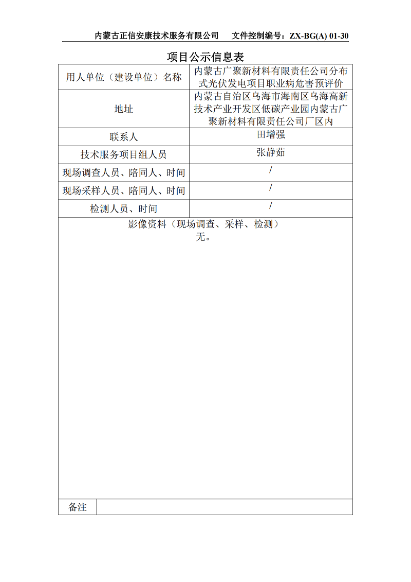 內蒙古廣聚新材料有限責任公司分布式光伏發電項目職業病危害預評價項目信息公示