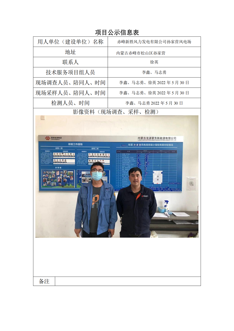 赤峰新勝風(fēng)力發(fā)電有限公司孫家營(yíng)風(fēng)電場(chǎng)信息公示