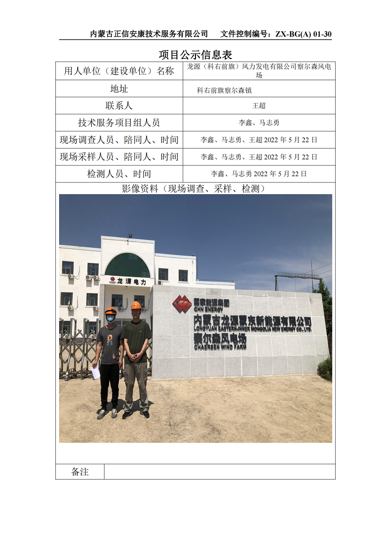 龍源(科右前旗)風力發電有限公司察爾森風電場信息公示