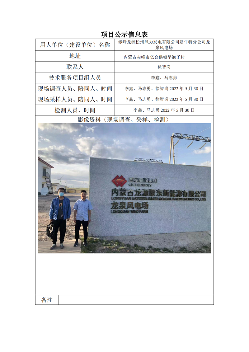 赤峰龍?jiān)此芍蒿L(fēng)力發(fā)電有限公司翁牛特分公司龍泉風(fēng)電場(chǎng)項(xiàng)目公示