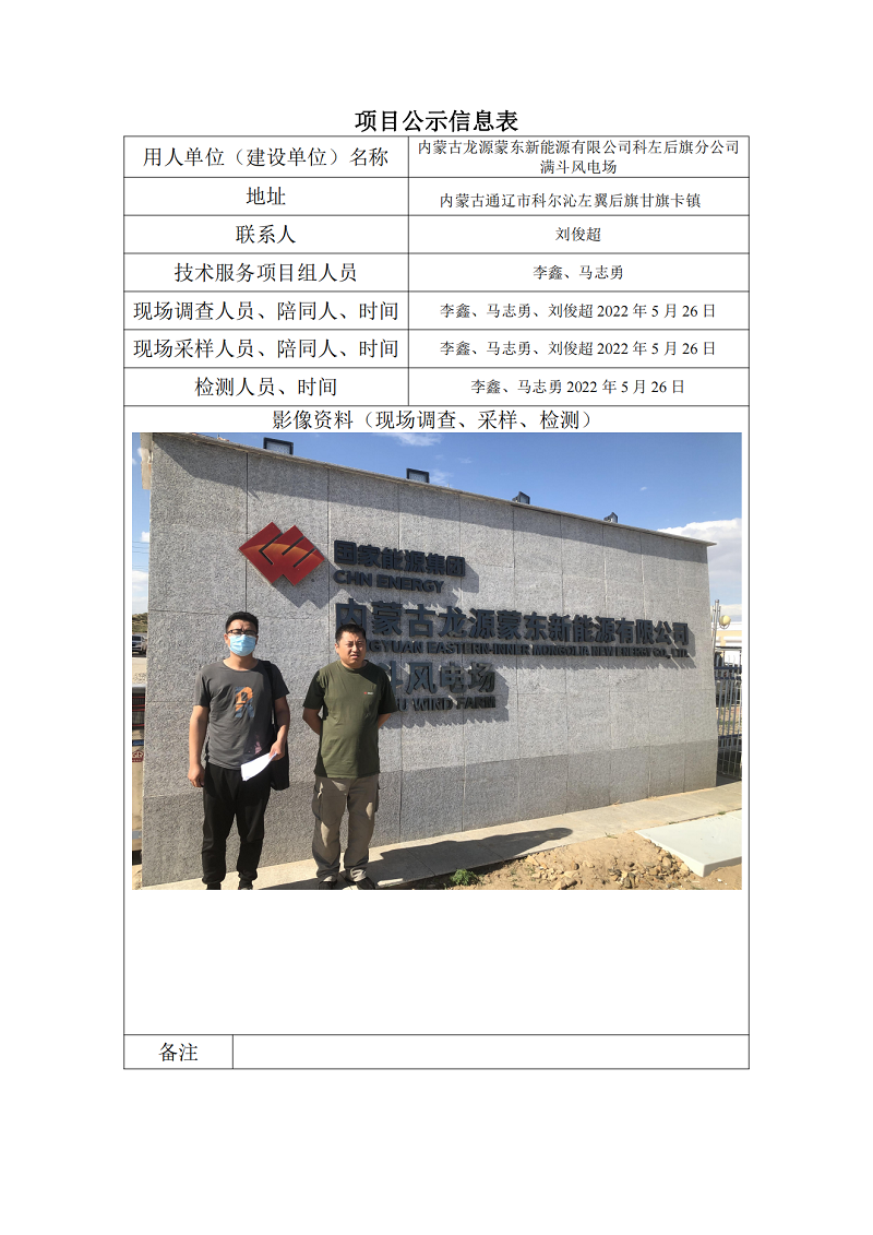 內蒙古龍源蒙東新能源有限公司科左后旗分公司滿斗風電場項目公示