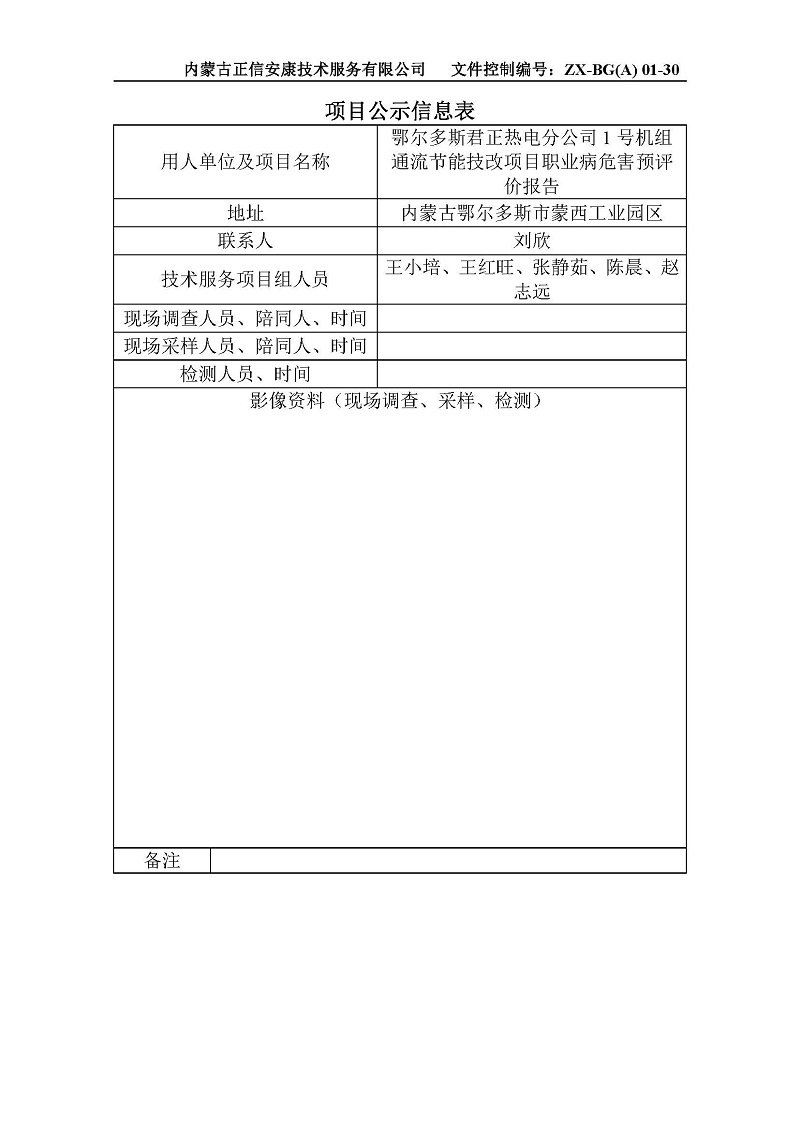 鄂爾多斯君正熱電分公司1號機組通流節能技改項目職業病危害預評價項目公示