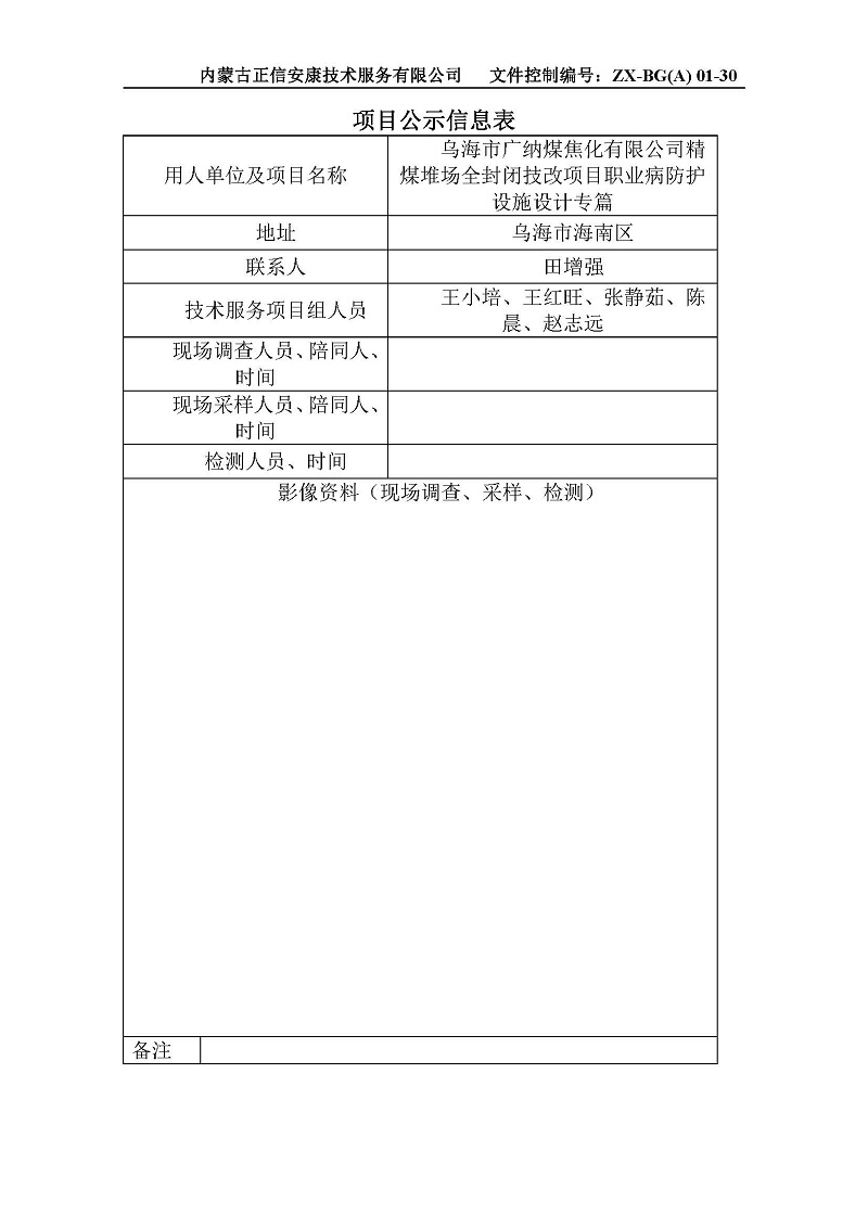 烏海市廣納煤焦化有限公司精煤堆場全封閉技改項(xiàng)目職業(yè)病防護(hù)設(shè)施設(shè)計(jì)專篇項(xiàng)目公示