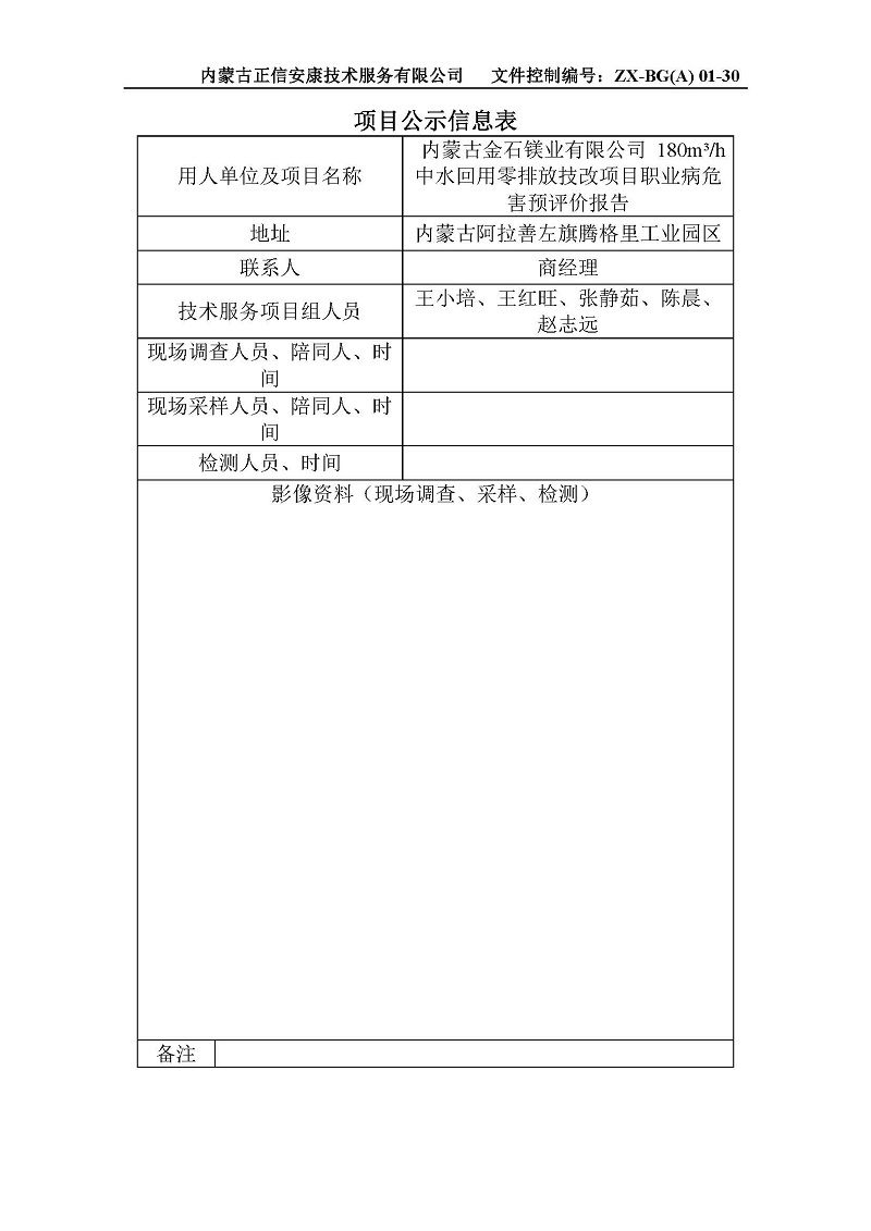 內蒙古金石鎂業有限公司 180m3h中水回用零排放技改項目職業病危害預評價報告
