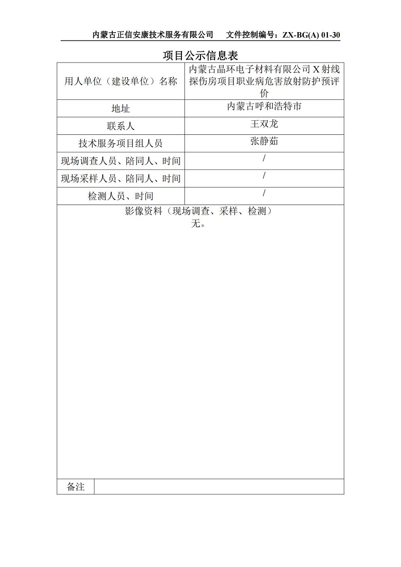 內(nèi)蒙古晶環(huán)電子材料有限公司X射線探傷房項(xiàng)目職業(yè)病危害放射防護(hù)預(yù)評價