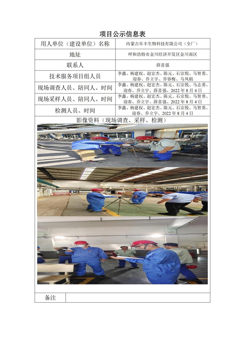 內蒙古阜豐生物科技有限公司(全廠)定期檢測項目公示