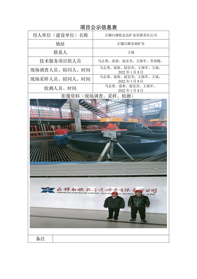 正鑲白旗乾金達(dá)礦業(yè)有限責(zé)任公司定期檢測項目公示