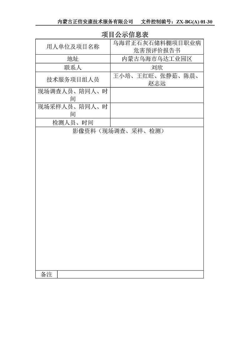 烏海君正石灰石儲料棚項目職業病危害預評價