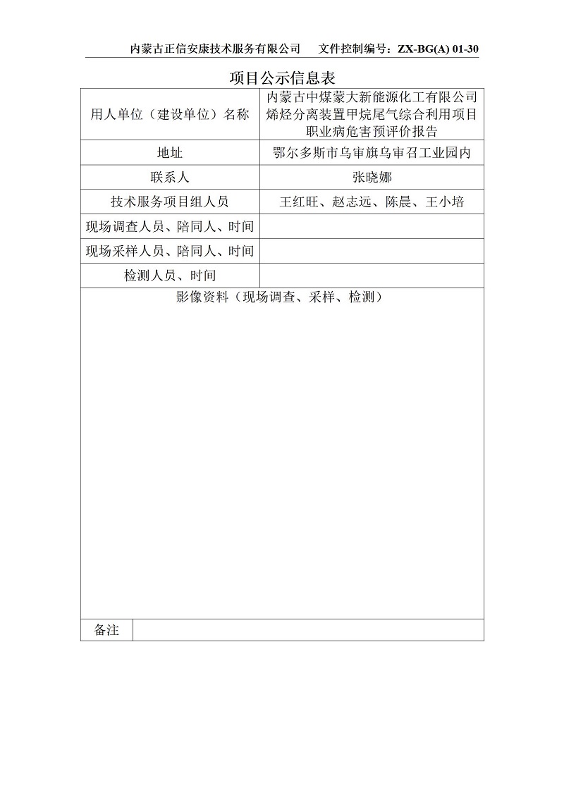中煤蒙大烯烴分離LNG預評項目公示信息表