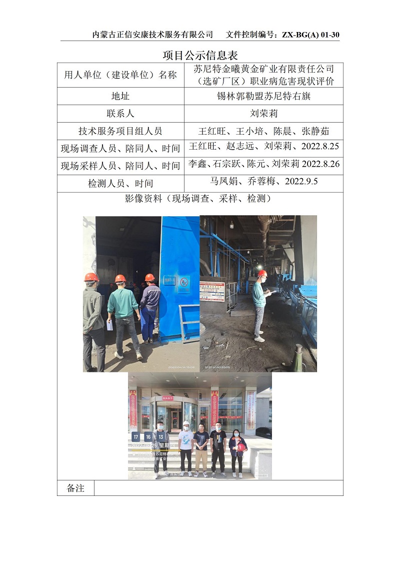尼特金曦黃金礦業(選礦廠區)項目公示信息表