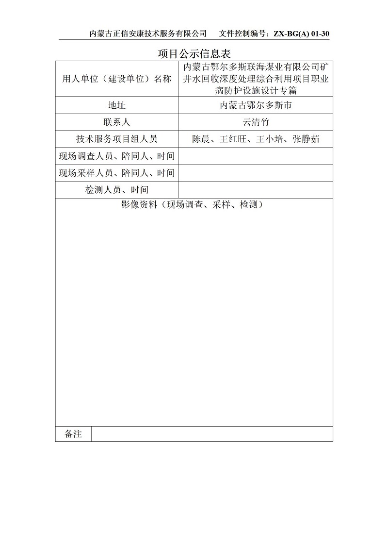 聯(lián)海煤業(yè)礦井水回收(專篇)項目公示信息表