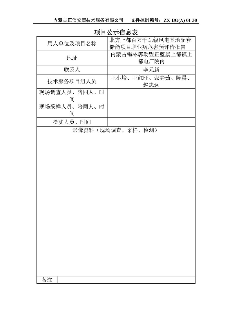 北方上都百萬千瓦級風(fēng)電基地配套儲能項(xiàng)目職業(yè)病危害預(yù)評價(jià)報(bào)告公示信息表