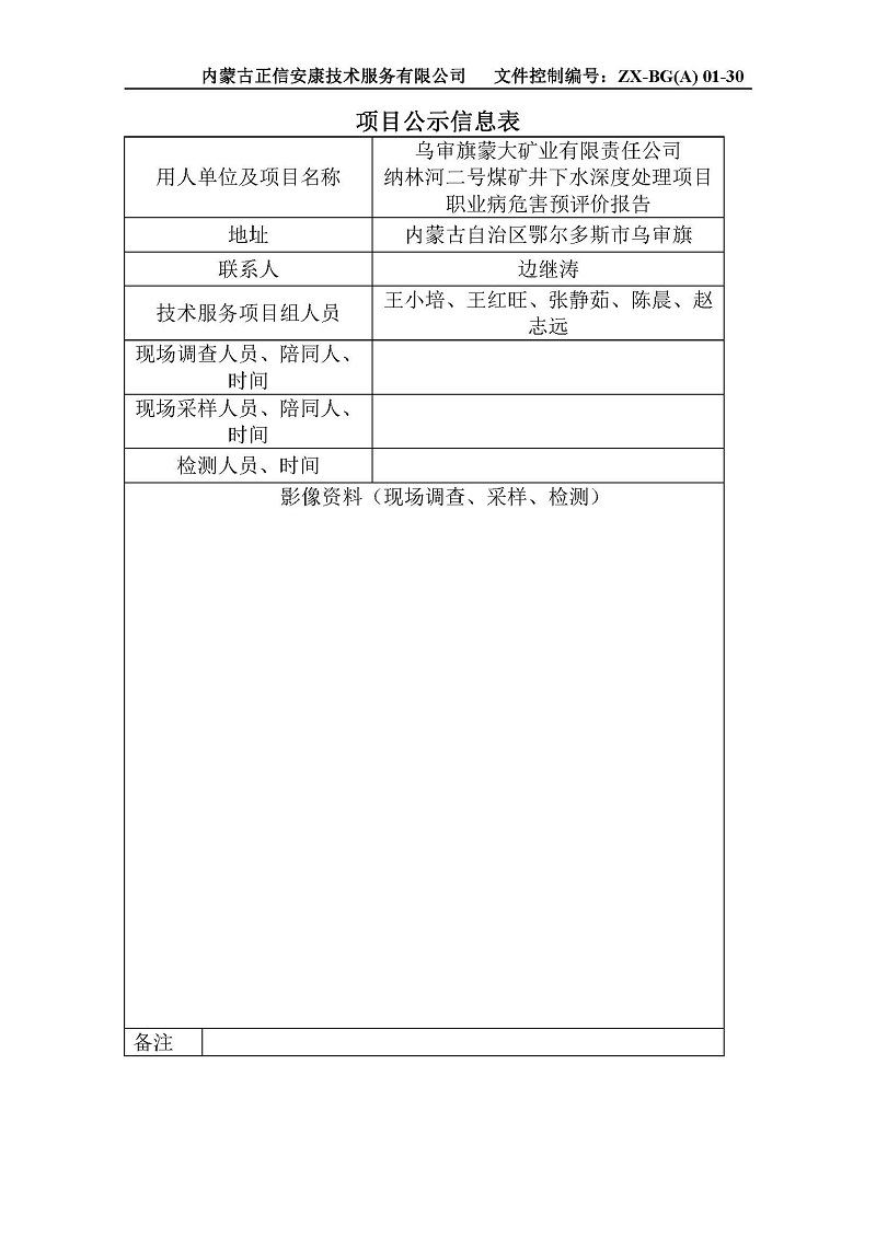 烏審旗蒙大礦業有限責任公司納林河二號煤礦井下水深度處理項目職業病危害預評價報告