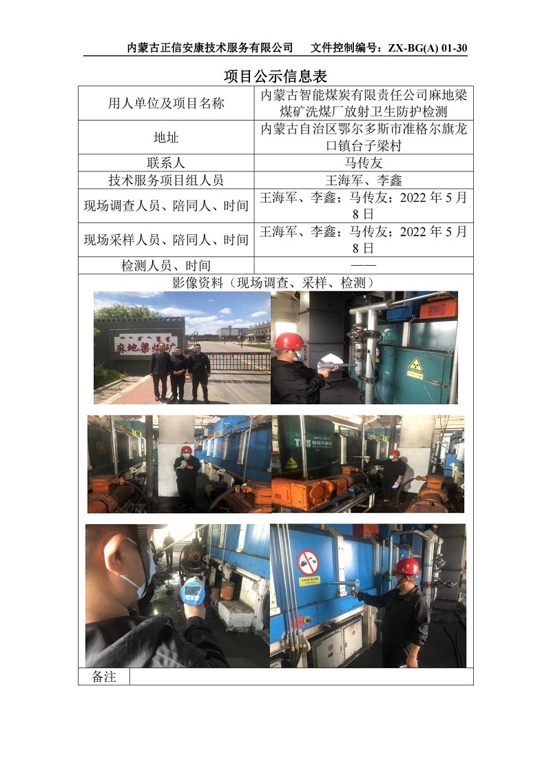 內蒙古智能煤炭有限責任公司麻地梁煤礦洗煤廠放射衛(wèi)生防護檢測_