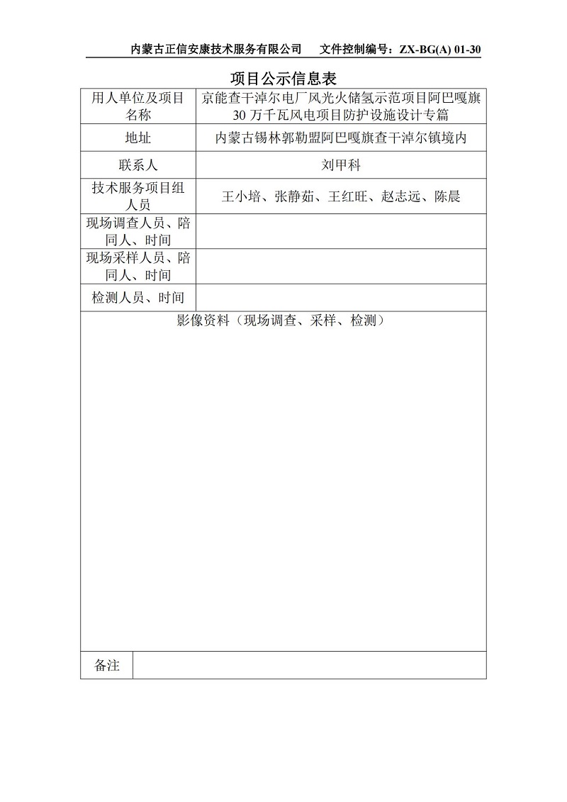 京能查干淖爾電廠風光火儲氫示范項目阿巴嘎旗30萬千瓦風電項目防護設施設計專篇項目公示信息表