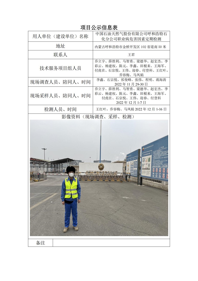 中國石油天然氣股份有限公司呼和浩特石化分公司職業病危害因數定期檢測信息公示
