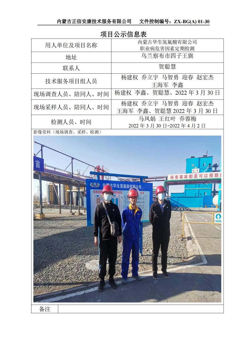 內蒙古華生氫氟酸有限公司定檢信息公示