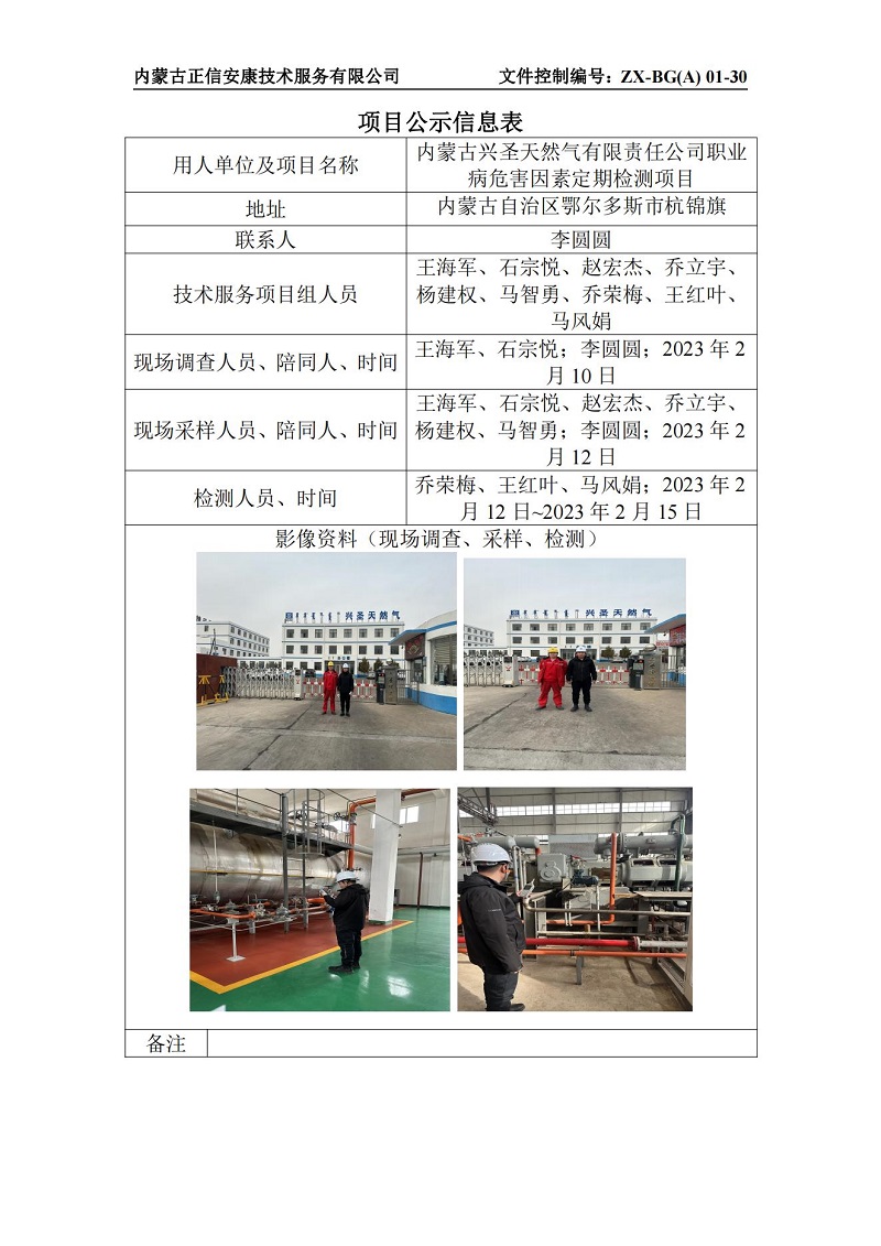 內蒙古興圣天然氣有限責任公司職業病危害因素定期檢測項目信息公示