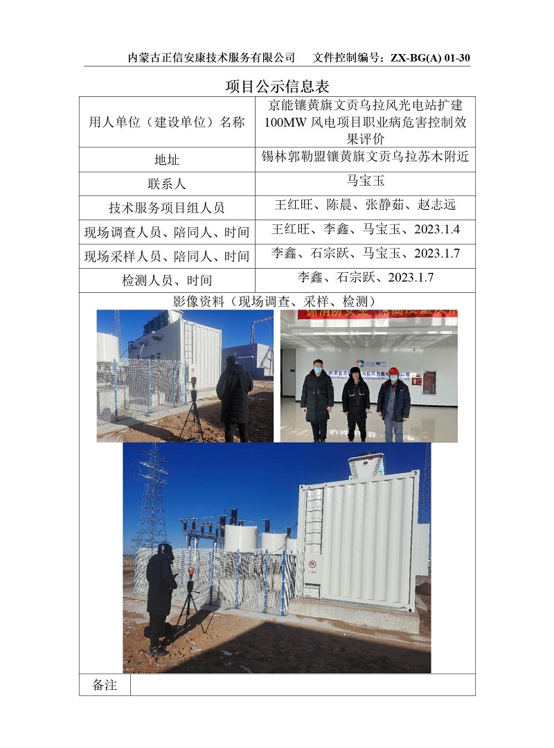 京能鑲黃旗文貢烏拉風光電站擴建100MW風電項目控評公示信息表