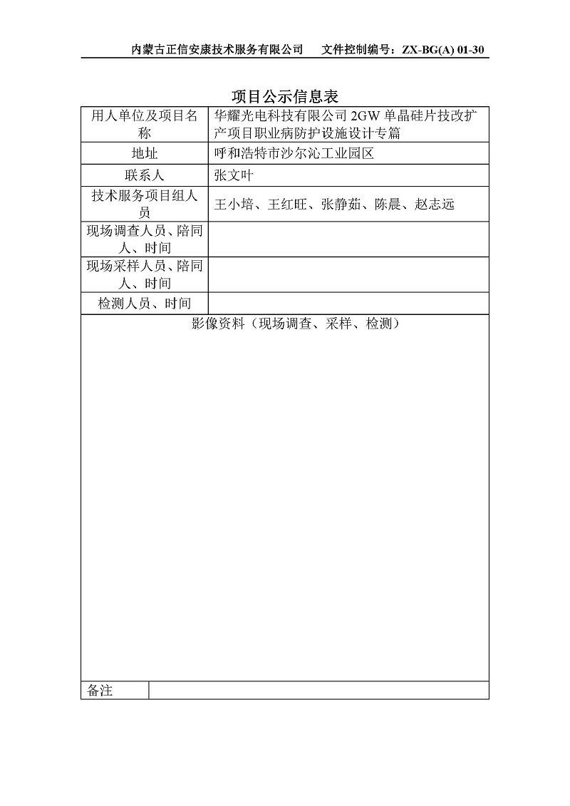華耀光電科技有限公司2GW單晶硅片技改擴產項目職業病防護設施設計專篇