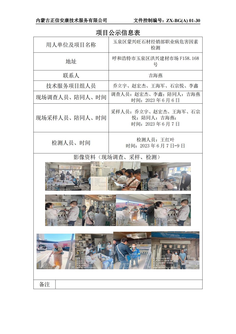 玉泉區蒙興旺石材經銷部職業病危害因素檢測