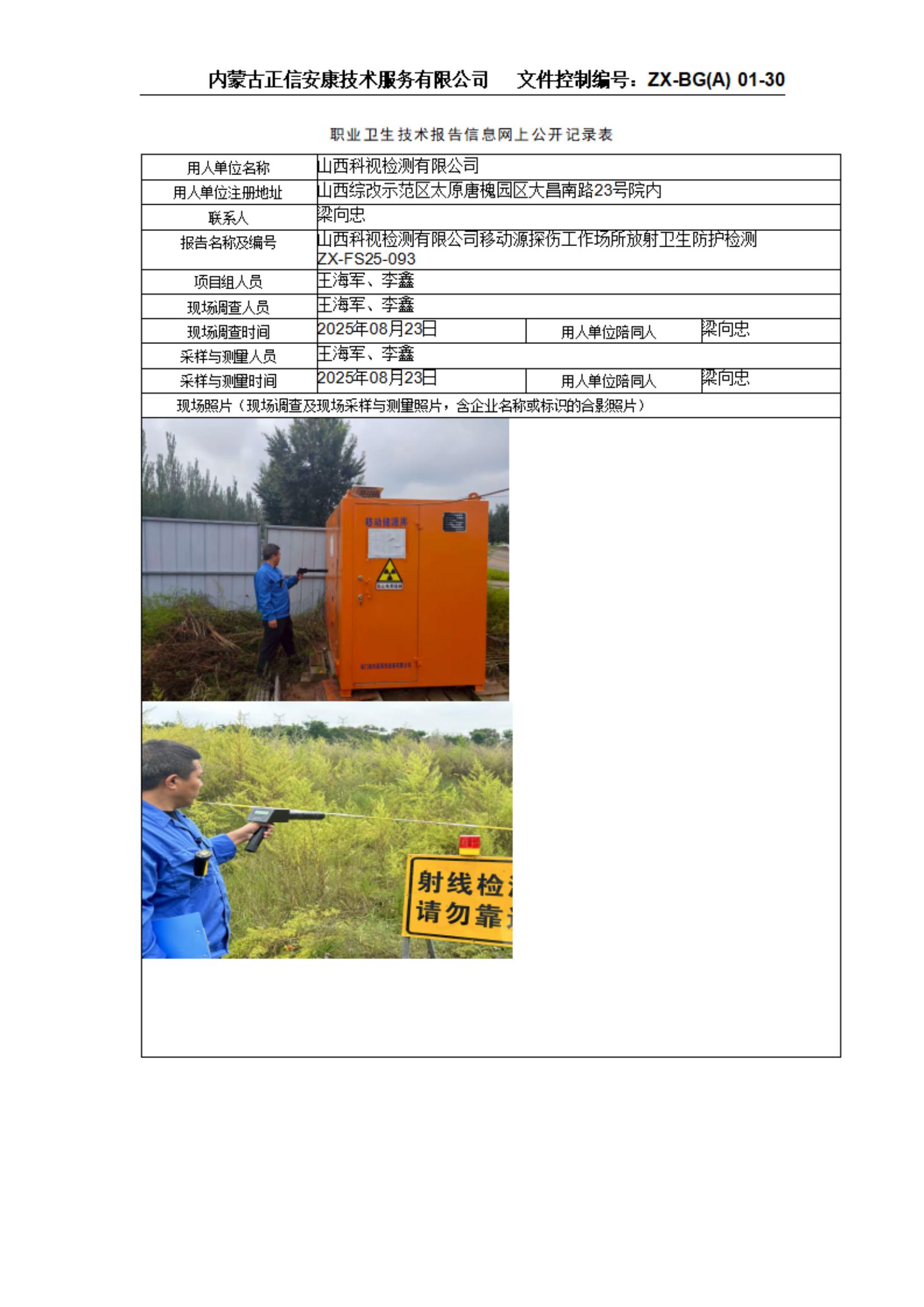 山西科視檢測有限公司移動源探傷工作場所放射衛生防護檢測